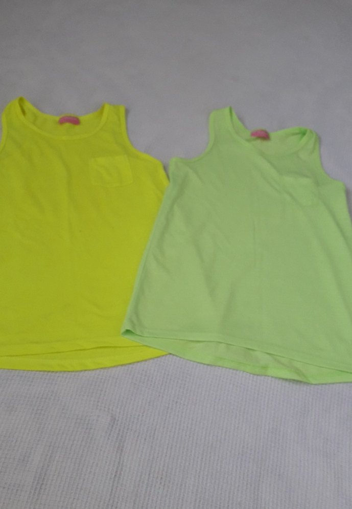 Sarı ve açık yeşil renklerde, cepli ve desensiz yumuşak kumaştan yapılmış 2 adet çocuk atleti. bir tanesinde leke var ufak fotoda çektim.
