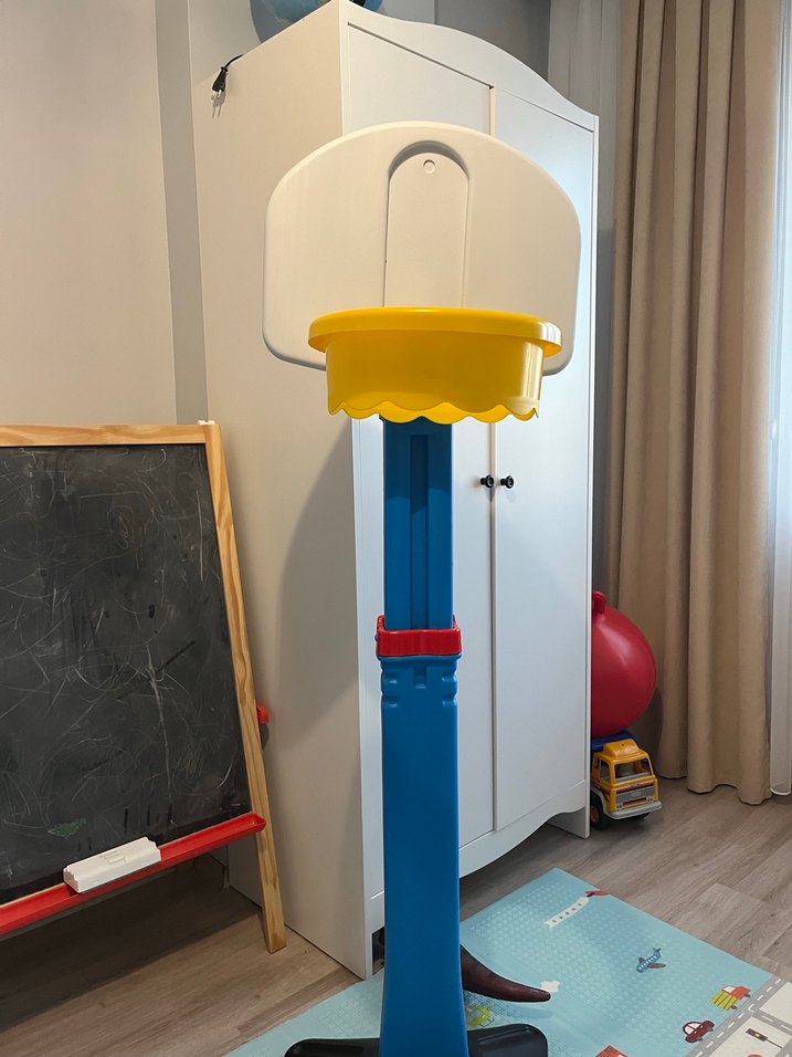 Dolu marka basketbol potası. Çok oynayamadık evimde yer olmadığı için satıyorum. İçine su koyup ağır yapılabiliyor. Boyu uzatılabiliyor. Ufak mavi kalem lekesi var ama leke çıkarıcıyla çıkar ben uğraşmadım. Güncel fiyatını da paylaştım. Yenidir tertemiz duruyor.