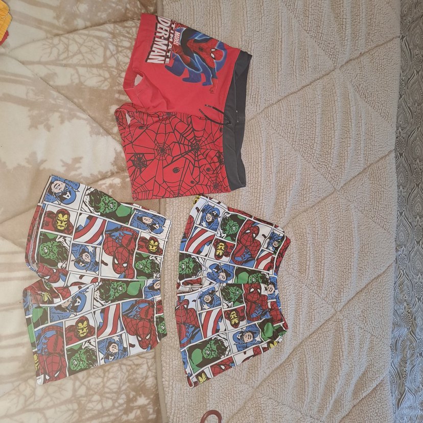 Süper kahraman temalı, örümcek adam ve diğer çizgi karakter baskılı renkli çocuk boxer ve iç çamaşırları. Yumuşak ve rahat kumaş. ️5-6-7 yaş ile uyumlu, 3 adeti 150 tl ,iyi günlerde kullanılsın