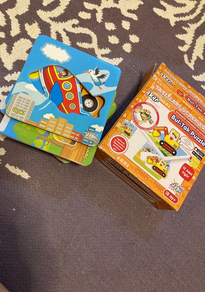 Canlı ve çok renkli çocuk bul tak bulmacaları seti, araç temalı ve eğlenceli tasarımlara sahiptir. Öğrenmeyi teşvik eder.
