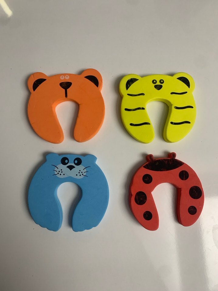 Ayı, kaplan, fok ve uğur böceği şeklinde renkli kapı koruyucuları, çocukların parmaklarını korumak için tasarlanmıştır.
