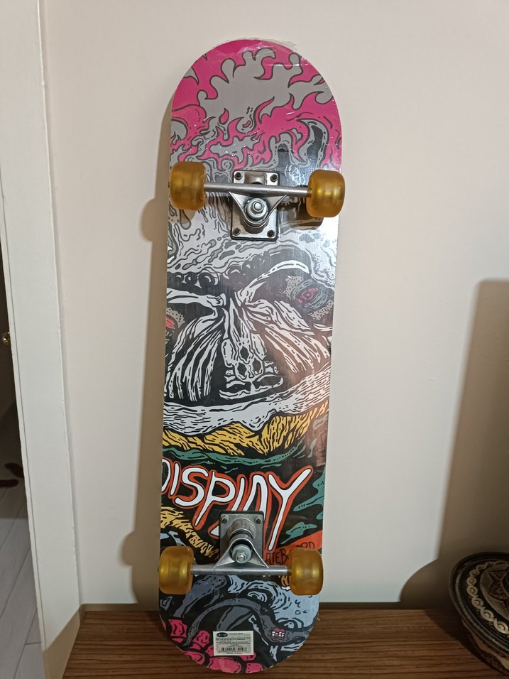 koyu renkli ve canlı tasarımlı çocuk kaykayı, sağlam tekerleklerle rahat sürüş sağlar.
