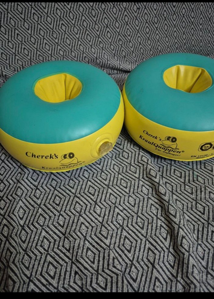 Çocuklar için renkli sarı şişme kolluklar, Chereksc markalıdır. Havuz ve plajda kullanım için uygundur. Sağlam bir sorunu yok. ️