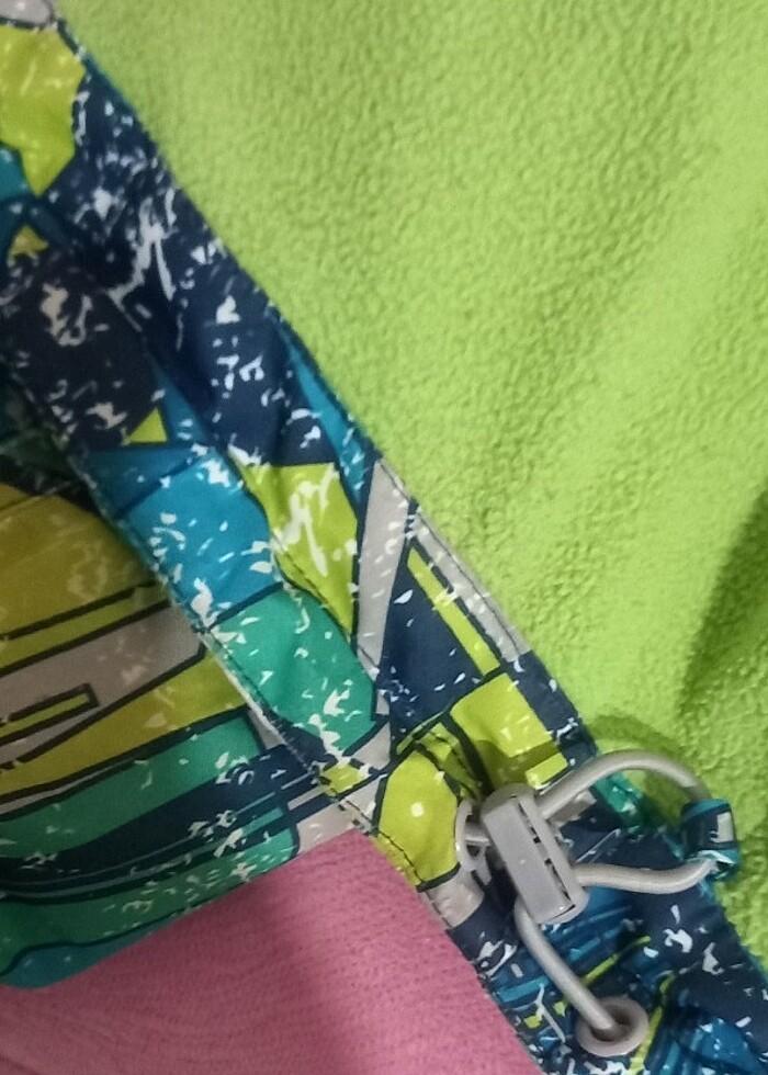 7-8 yas için uygundur.bel kısmında daraltma lastiği var.ic kısımda isim yazma yeri var.ic kısımda fermuarli cebi var önden hem furmuarli hemde citcitlidir.kapüsonludur.kapüşonu yanlardan lastikli ve boyundan cirtlidir.istenirse kapüşon çıkarılabilir