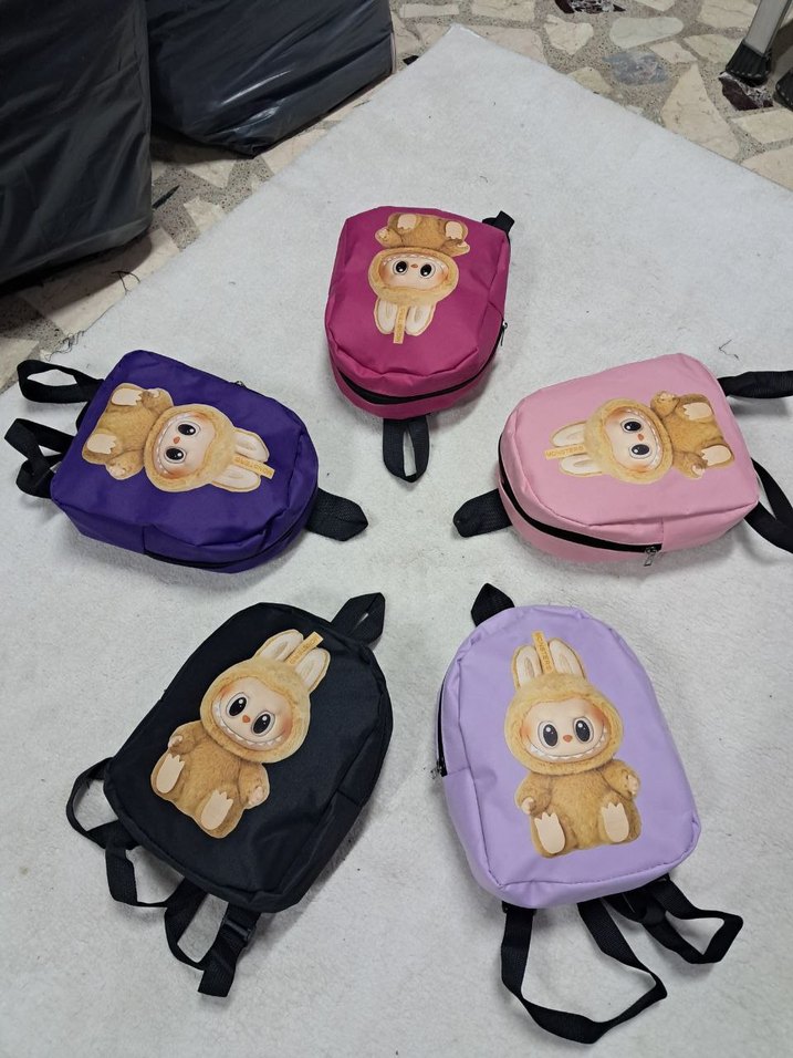 Sevimli tavşan desenli, rengarenk çocuk okul çantaları. Ayarlanabilir askıları ve fermuarlı ana bölmesi vardır.
