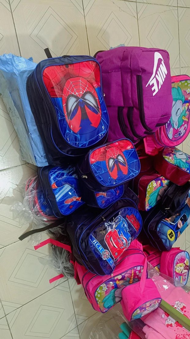 Çok bölmeli, renkli çocuk okul çantası. Örümcek Adam temalı canlı desenler içerir. Okul için uygundur.
