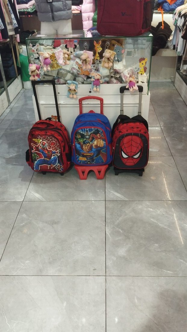 Renkli, tekerlekli çocuk okul çantası, kolay taşınır ve okul malzemeleri için geniş hacme sahiptir.