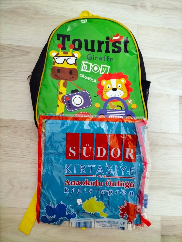 Renkli Çocuk Okul Çantası ve boyama Önlüğü