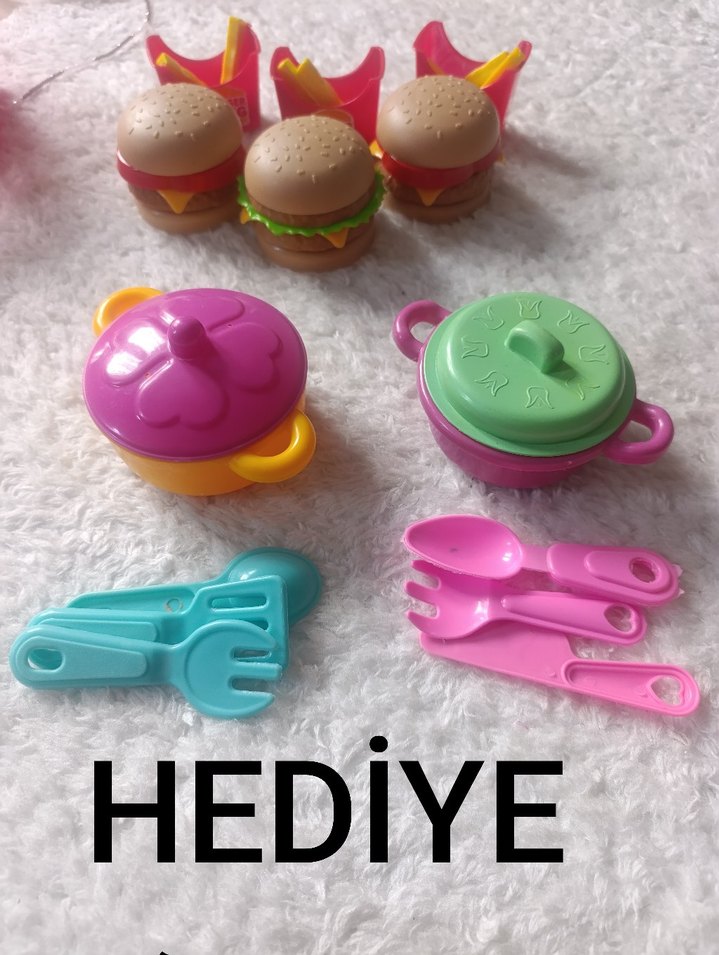 Renkli Çocuk Oyuncak Seti - Hamburger ve Mutfak Gereçleri
