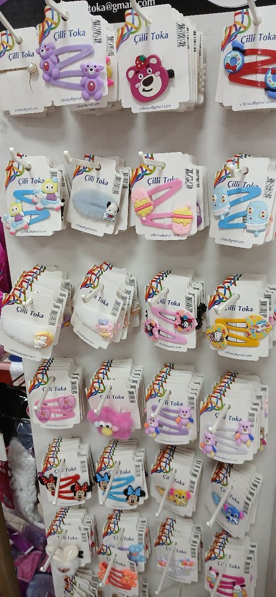 Renkli, baskılı desenlere sahip çocuk saç tokaları, Velcro bantlı, counterculture tarzında rock punk havası taşıyor.
