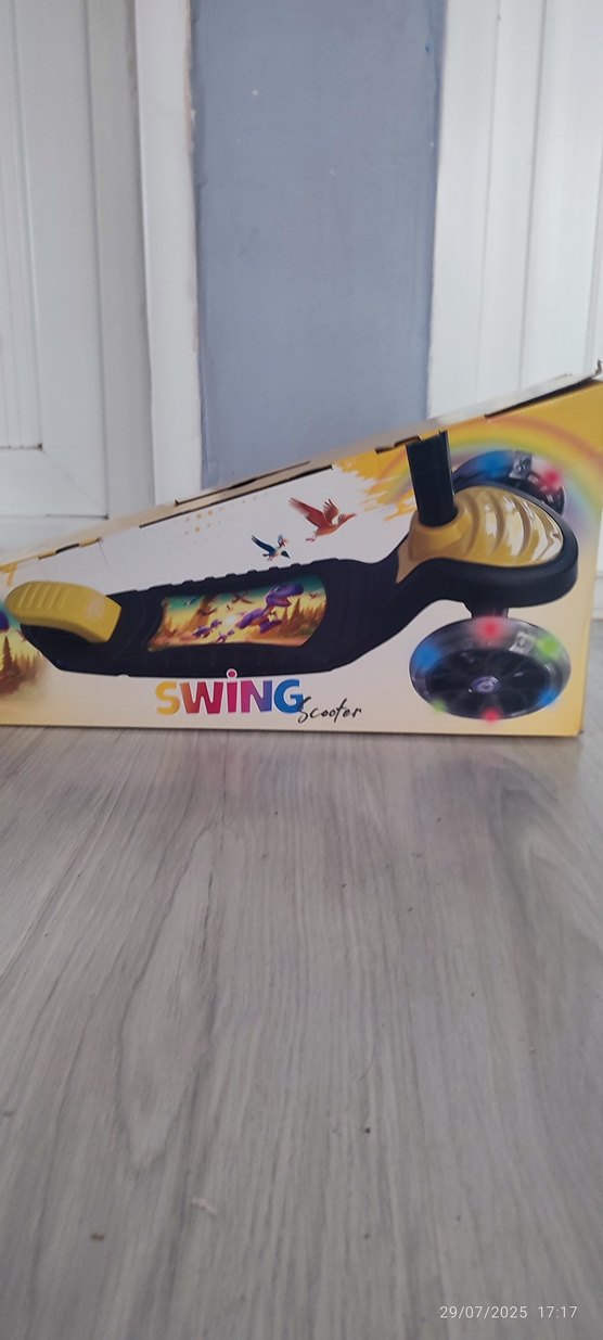 Renkli ve üç tekerlekli çocuk scooter'ı, denge ve eğlence sağlar.