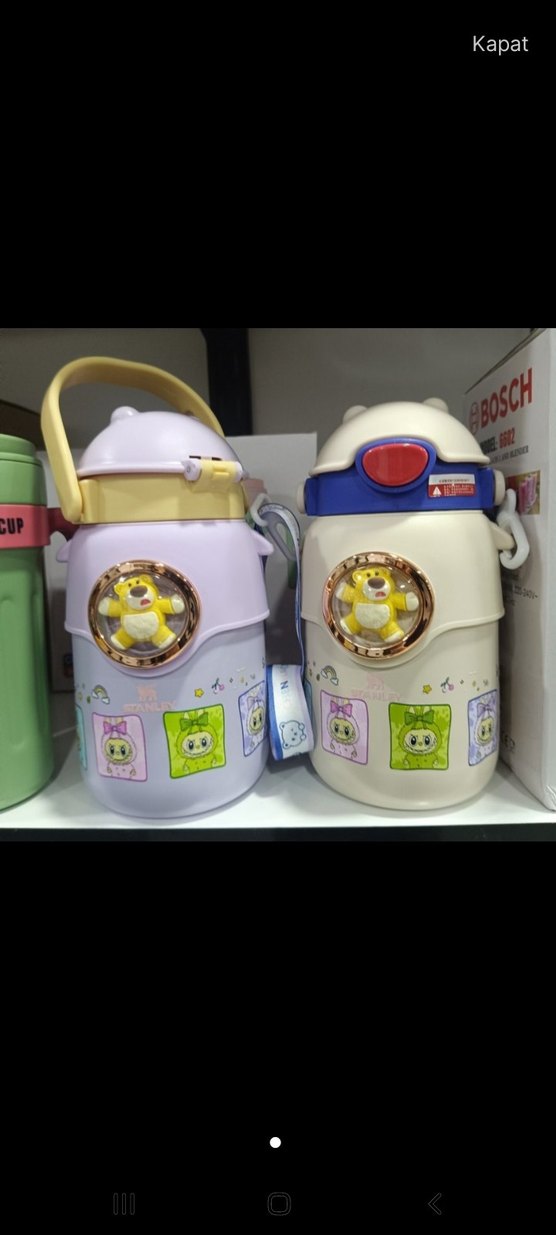 Oyunlu hayvan desenleri ve güvenli kapaklarıyla renkli BOSCH çocuk termos şişeleri, içecekleri sıcak tutar.