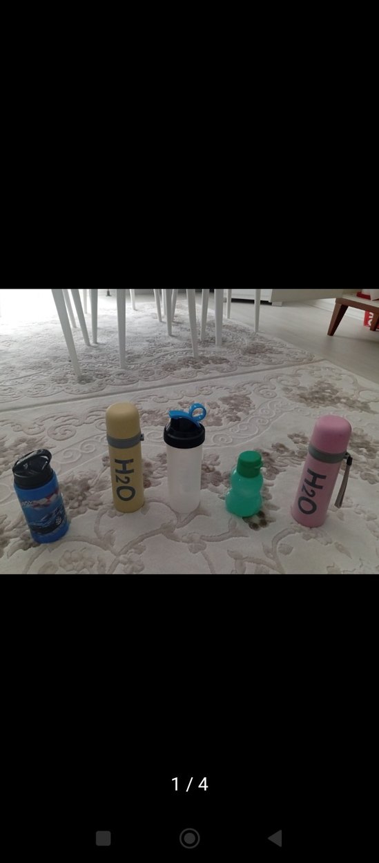 Çocuklar için renkli termos şişeleri, üzerinde 'H2O' yazısı bulunur. İçecekleri sıcak veya soğuk tutmaya uygundur. Farklı boy ve renk seçenekleri mevcuttur. yeşil olan Tupperware