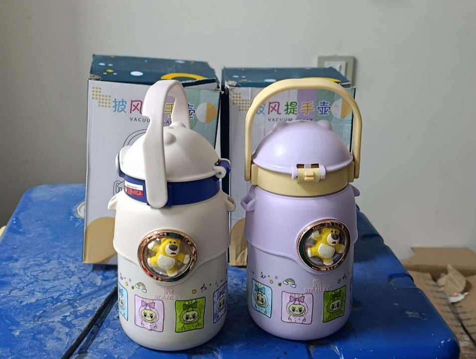 Renkli hayvan desenli çocuk termosu, taşıma saplı ve VACUU markalı. İçecekleri sıcak tutar, kolay taşınır. 800 ml sıfır ithal ürün