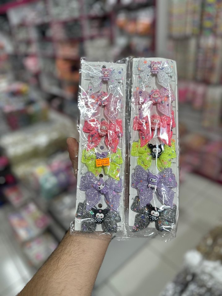 Velcro özellikli, renkli baskılı çocuk saç tokaları. Rock punk tarzında canlı fiyonklar ve kafatası detayları içerir.