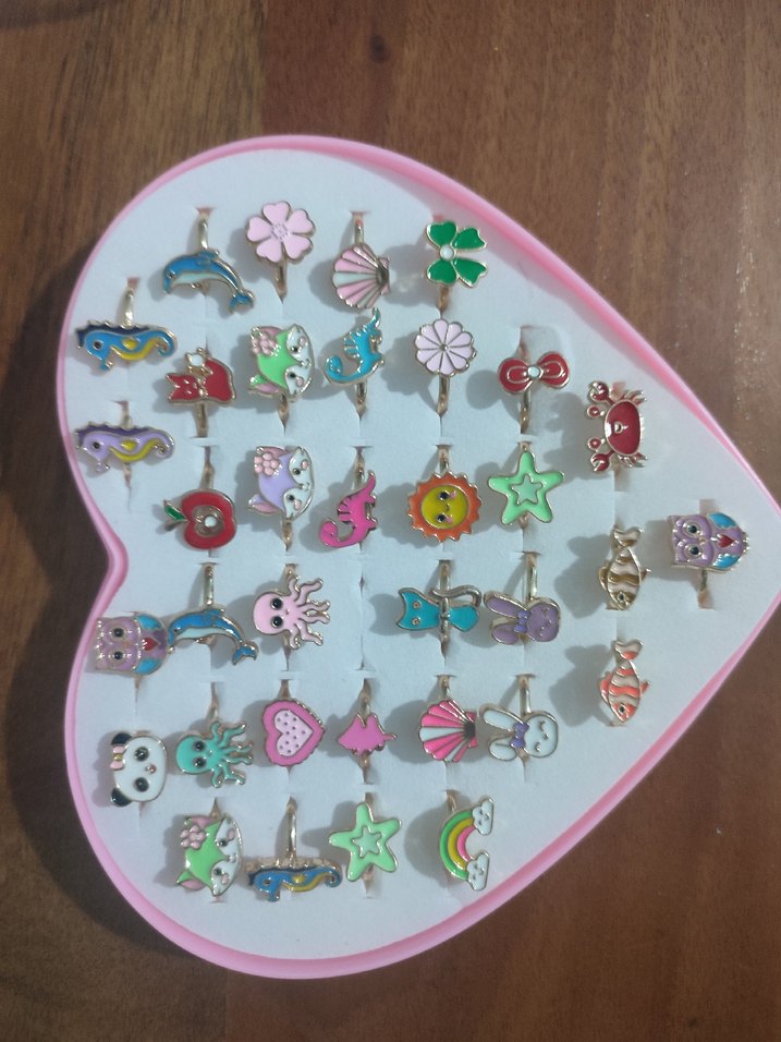 Renkli, işlemeli ve payet detaylı çocuk yüzük. adet fiyatıdır.