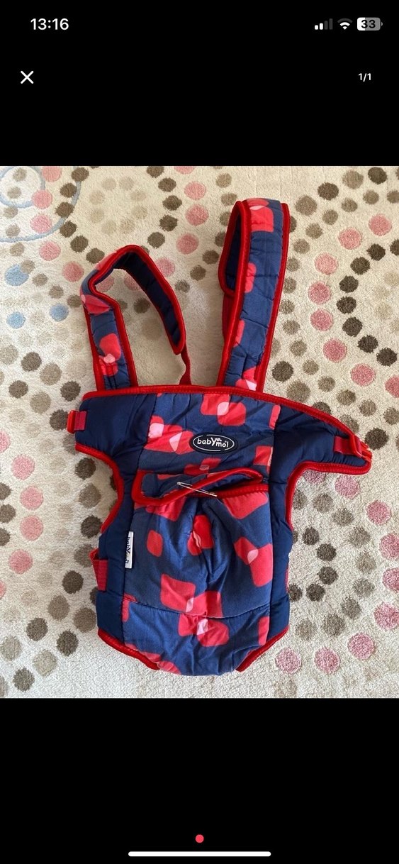 Renkli ve yumuşak dolgulu askılara sahip bebek taşıyıcı, konforlu ve güvenli taşıma sağlar. Canlı renkleriyle dikkat çeker. Çok az kullanıldı temiz