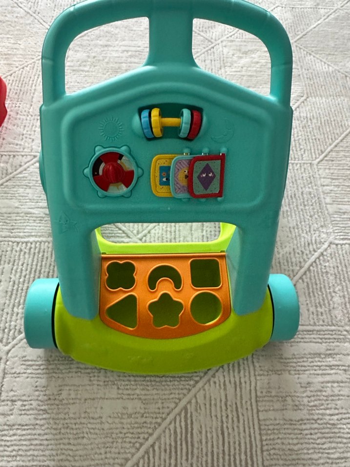 Renkli, sağlam tutma saplı ve çeşitli şekillerle etkileşimli oyun paneli bulunan bebek yürüteci. Yürümeyi destekler ve duyusal gelişimi teşvik eder. 1 ay oldu hediye geldi başka yürüme arkadaşı da olduğu için fazla