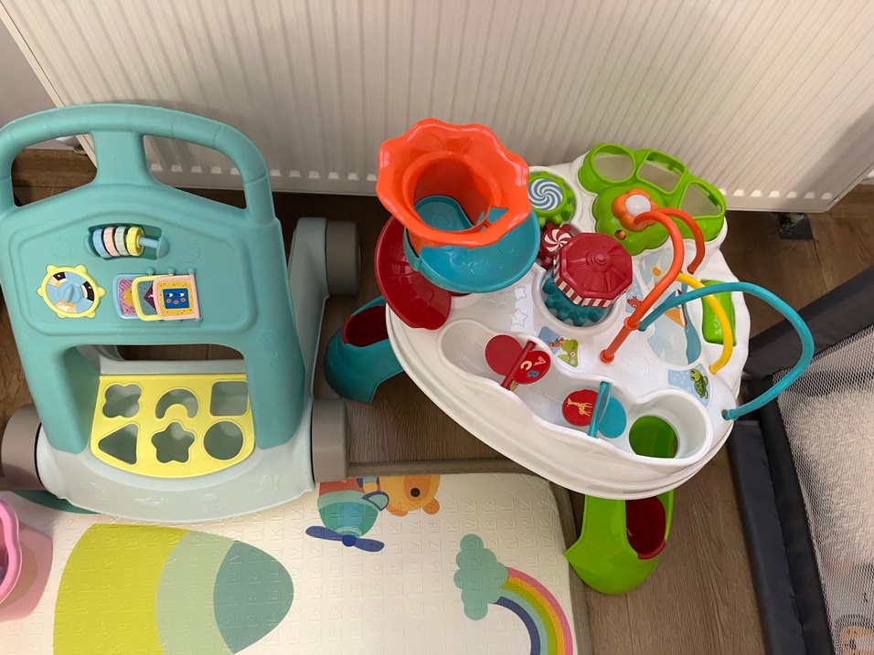 Çocukların öğrenme ve oyun için çeşitli interaktif öğeler içeren renkli eğitici oyuncak. Farklı şekiller, renkler ve aktiviteler bulunur. İkisi fiyatıdır