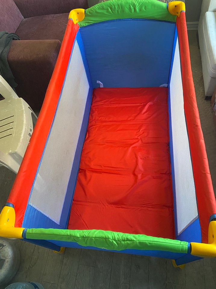 Renkli oyun parkı yatağı, nefes alabilen file yanlar ve yumuşak taban ile konforlu ve güvenlidir. Canlı renkleriyle odalara neşe katar. ️