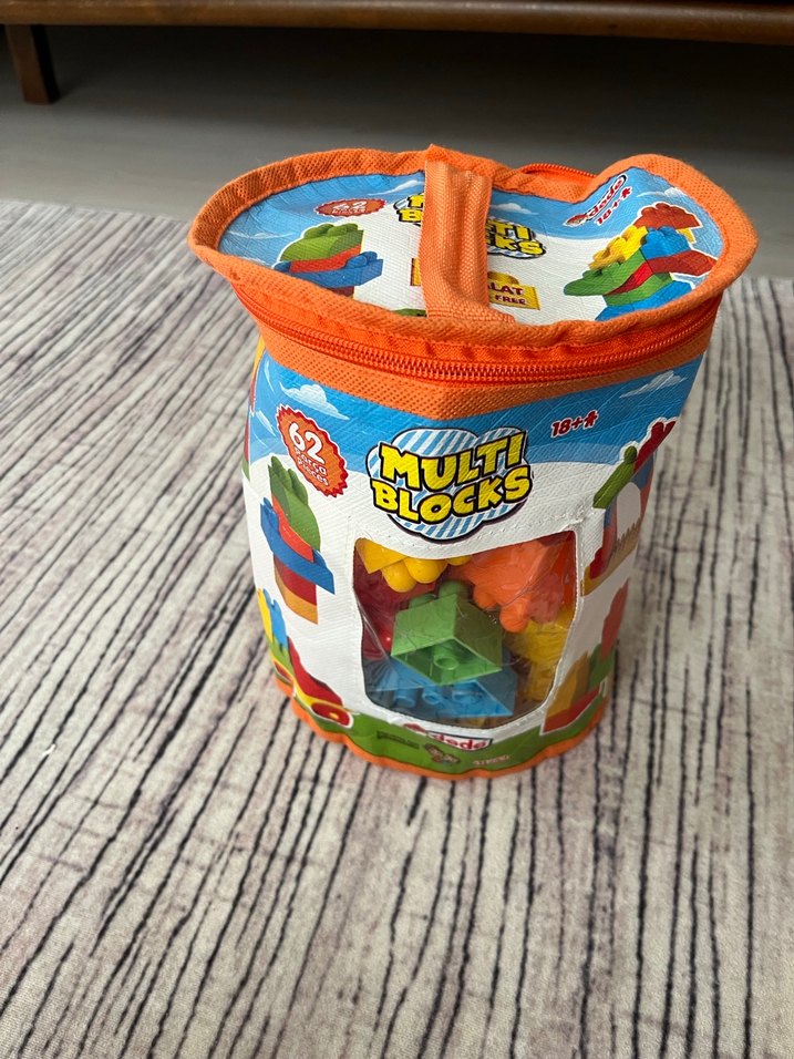 62 parçadan oluşan renkli çok parçalı lego seti, kullanışlı turuncu çantasıyla saklama kolaylığı sağlar. Sorunsuz eksiksizdir