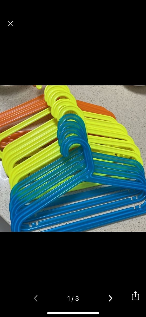 Mavi, sarı ve turuncu renklerde plastik askılardan oluşan renkli bir set. Hafif yapısı ile kıyafetlerinizi düzenlemek için uygundur.