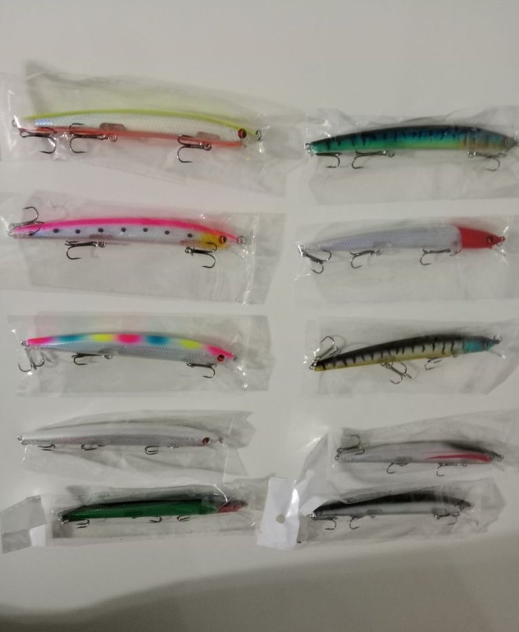 Farklı renk ve tasarımlarda çoklu kancalı renkli balıkçılık yemleri seti . 12 cm boncuklu sesli adet 140₺ BİM'in sahteleri bile daha pahalı fiyat uygun yazılmıştır.