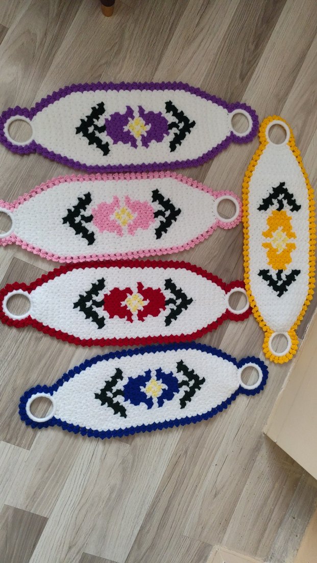 Çift uçlarında halkalar bulunan, dekoratif desenli renkli banyo lifi 5 uzun 5 kese lif