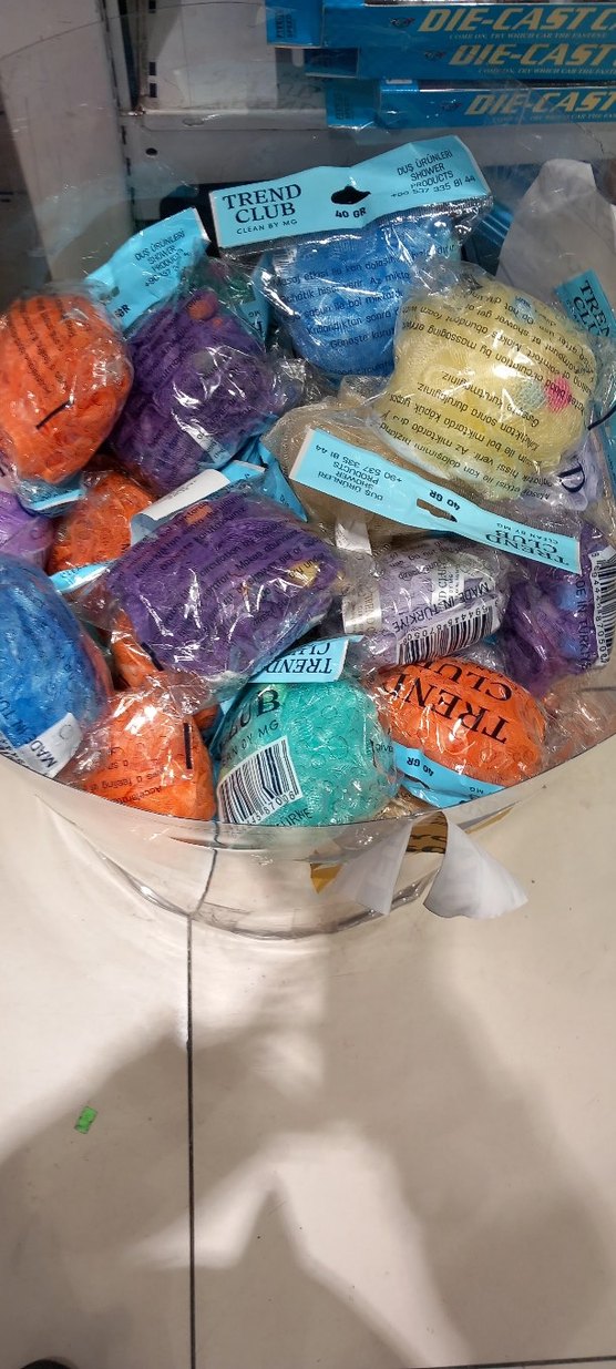 Çeşitli canlı renklerde, tek tek paketlenmiş yumuşak dokulu banyo süngerleri. Nazik temizlik için uygundur.