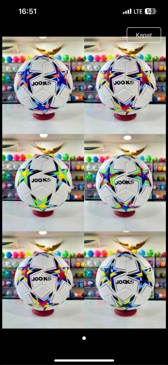 420-430 gram Çoklu renkli yıldız desenlerine sahip, JOOK logosu bulunan renkli futbol topları ⚽.inik gönderilir. Hangi renk istenirse o gönderilir