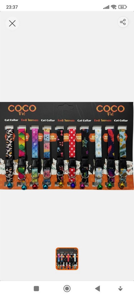 Farklı desenlerde, renkli ve canlı kedi tasması seti. Her tasmanın üzerinde küçük bir zil bulunmaktadır. tane fiyatidir