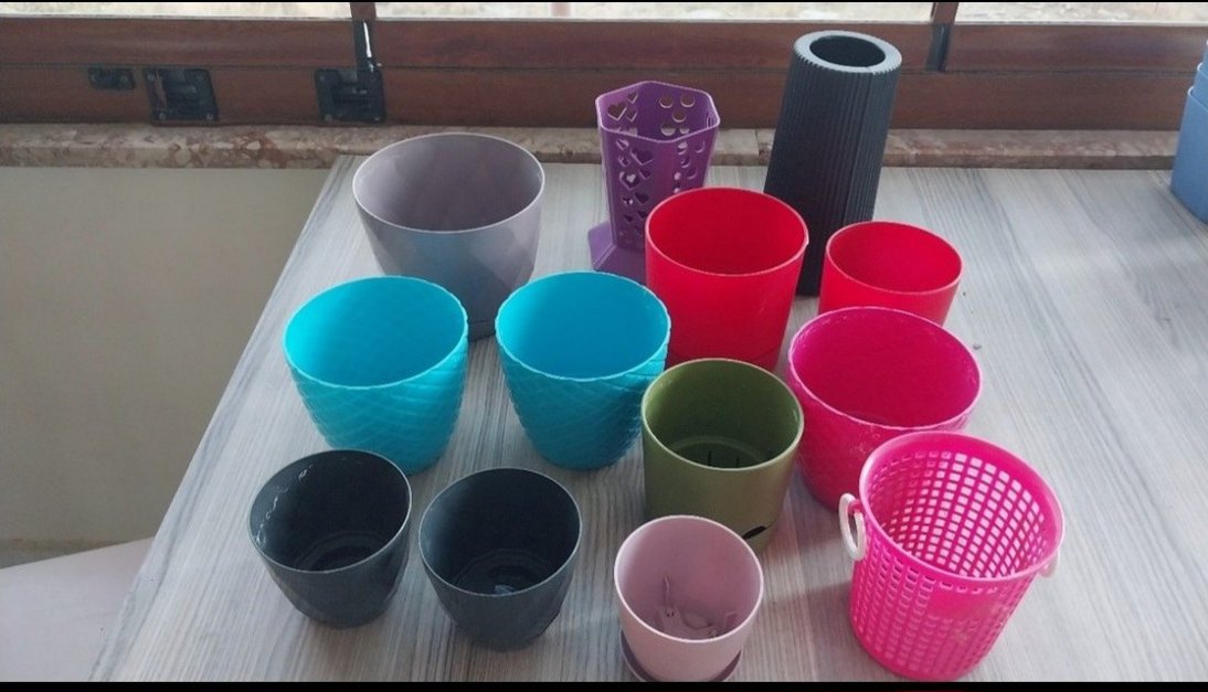 TOPLU FİYATTIR.Ayrı ayrı satmıyorum.Farklı boy ve şekillerde, renkli plastik saksılar.Kaktüs ve sukulent dikmek için kullandım.Sadece 1 tane saksının kenarı çatlak kullanıma engel değil.