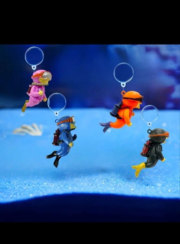 Çeşitli kıyafetlerde küçük halkalı, renkli dalgıç figürleri seti, animasyon figür koleksiyonu olarak tasarlanmıştır.