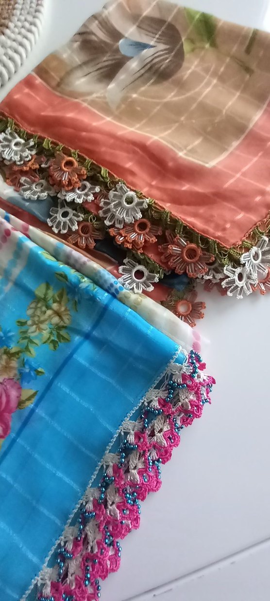 Kadınlar için renkli tekstil kumaş ve detaylı dantel kenarlarla bohem, hippie ve retro tarzını yansıtan fular. tanesi 200 tl