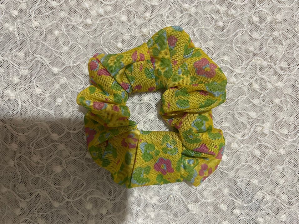Renkli dantel detayına sahip, yumuşak sentetik kumaştan yapılmış bohem tarzda toka. El emeğidir