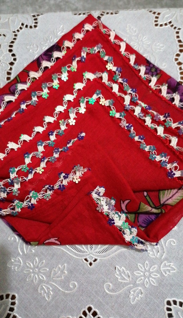 Kadınlar için renkli tekstil kumaştan, kenarları dantel detaylı bohem ve retro tarzda fular yemeni hayırlı olsun kare boy 87 cm