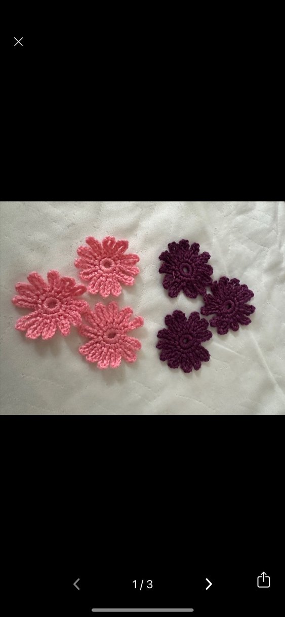 Renkli örgü dantel çiçek şeklinde, pembe ve mor tonlarında, bohem ve rahat tarzda kadın saç aksesuarları. Canta bant kazak süsü #elişi#hobi#çiçek