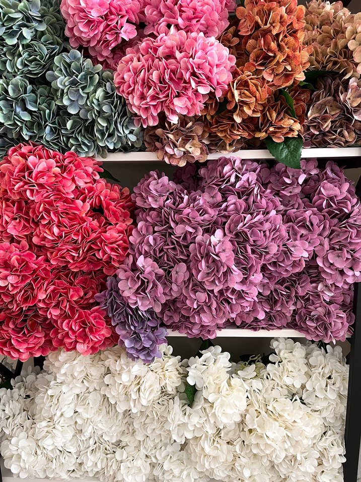 Çeşitli renklerde ıslak dokulu yapay ortanca demetleri, ev dekorasyonu ve hediyelik ürünlerde kullanılabilir 5 dallı