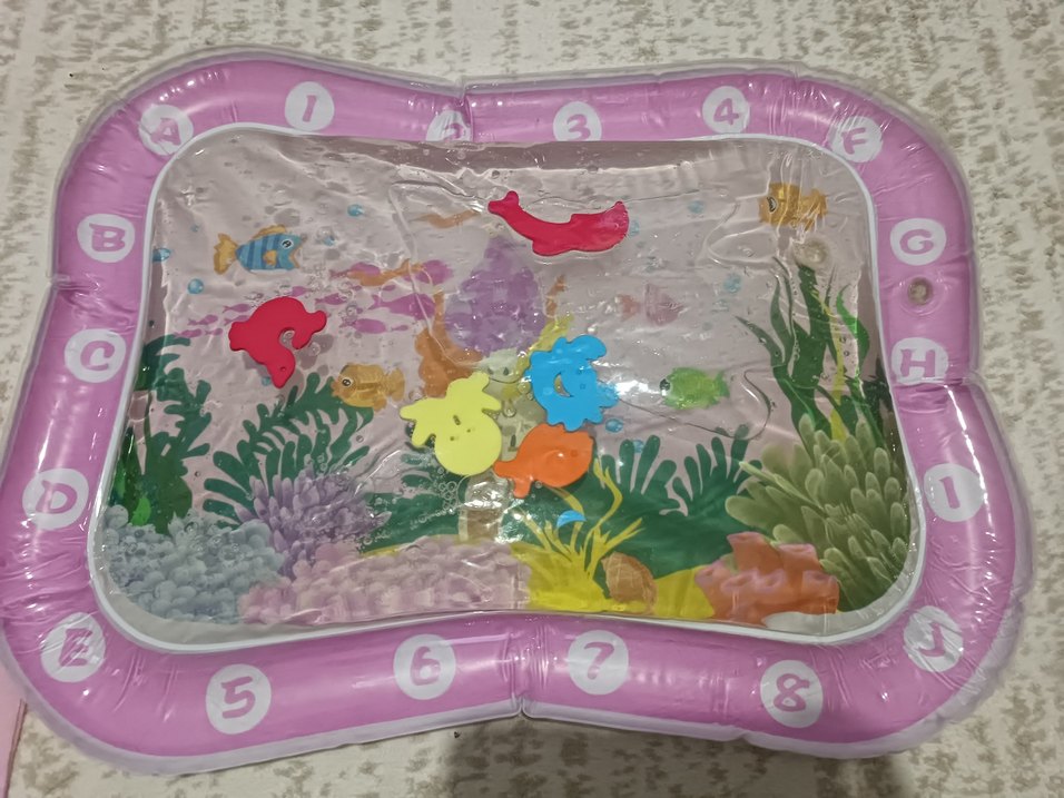 Renkli deniz temalı su oyuncağı, yüzen deniz canlıları ve numaralı kenarlarıyla etkileşimli oyun sağlar. Canlı ve eğlenceli tasarım.