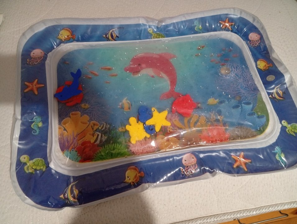 Su dolu şeffaf mat içinde yüzen şekillerle deniz temalı renkli su oyuncağıdır. Canlı deniz canlıları görselleriyle duyusal oyun sağlar.