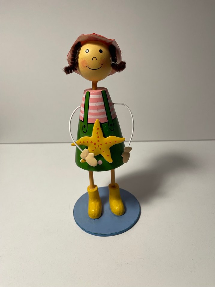 Bu renkli figür, elinde sarı deniz yıldızı tutan gülen bir karakteri gösterir. Mavi taban üzerinde durur, çizgili gömlek ve yeşil tulumları vardır. Yan tarafı kırık