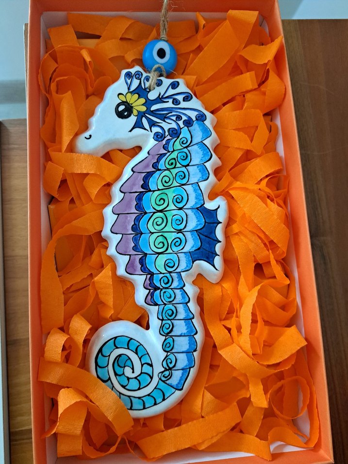 Canlı renklerde, mavi ve mor desenlerle süslenmiş el yapimi çini duvar süsü ,hediye kutusu ile gonderim saglanacak.hassas urun olmasi nedenihle iade kabul edilmez.
