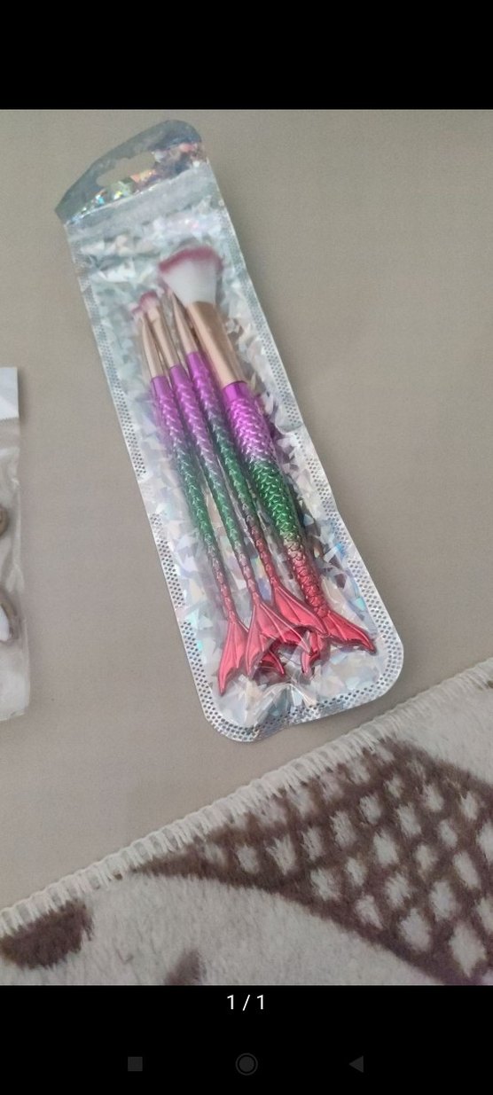 Yumuşak kıllara sahip, denizkızı kuyruğu saplı renkli makyaj fırça seti. ♀️