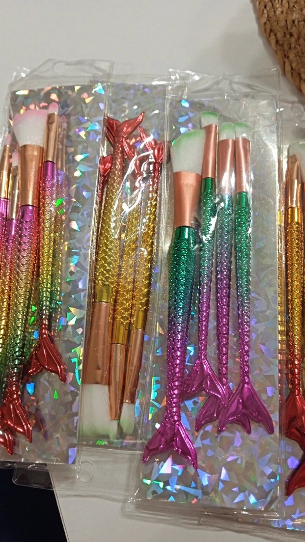 Yumuşak kıllı, tutması kolay dokulu renkli denizkızı kuyruğu makyaj fırçaları seti. ♀️