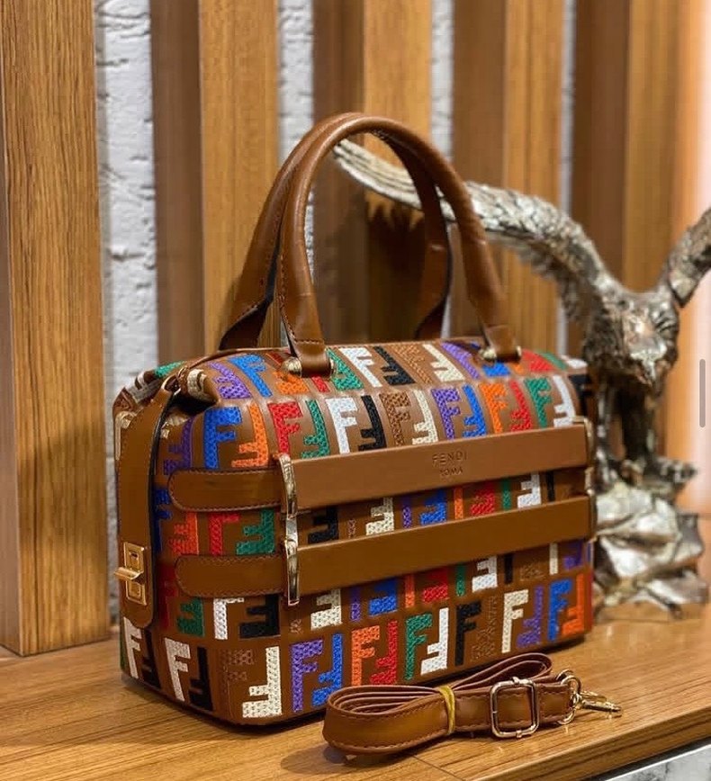 Renkli deri, baskılı desenli ve tokalı detaylara sahip bohem tarzda kadın çantası, günlük kullanıma uygun.