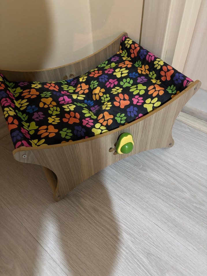 Renkli patili desenli yastığı ve ahşap çerçevesiyle evcil hayvanlar için rahat bir oyun parkı yatağı. Ayrı ayr da alabilirsiniz