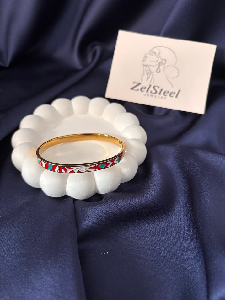 Altın renkli bilezik, renkli desenli ve boncuklu tarzda, bohem ve retro havası taşır. ZelSteel markalı, kombinlerinize şıklık katacak bir parça Kararma yapmaz günlük kullanıma uygundur
