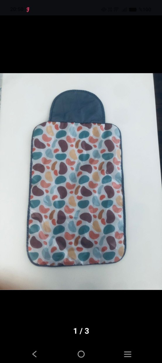 Renkli desenli, yumuşak kumaştan yapılmış bebek alt açma minderi, pratik kullanım sağlar.