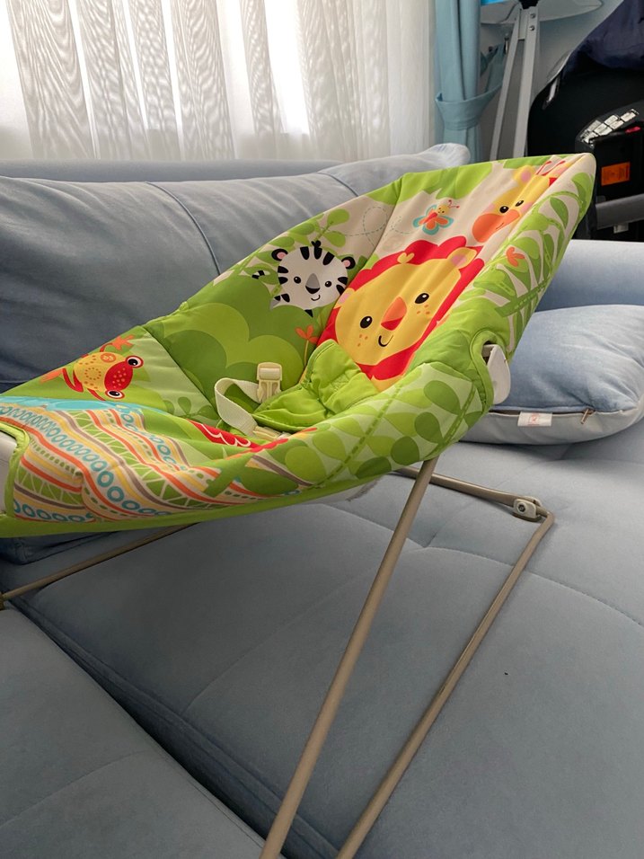 Hayvan desenli, sağlam metal çerçeveli renkli bebek Ana Kucağı Üstünde ki parçası yoktur . Fisher price titreşimli üründür . Emniyet kemeri vardır