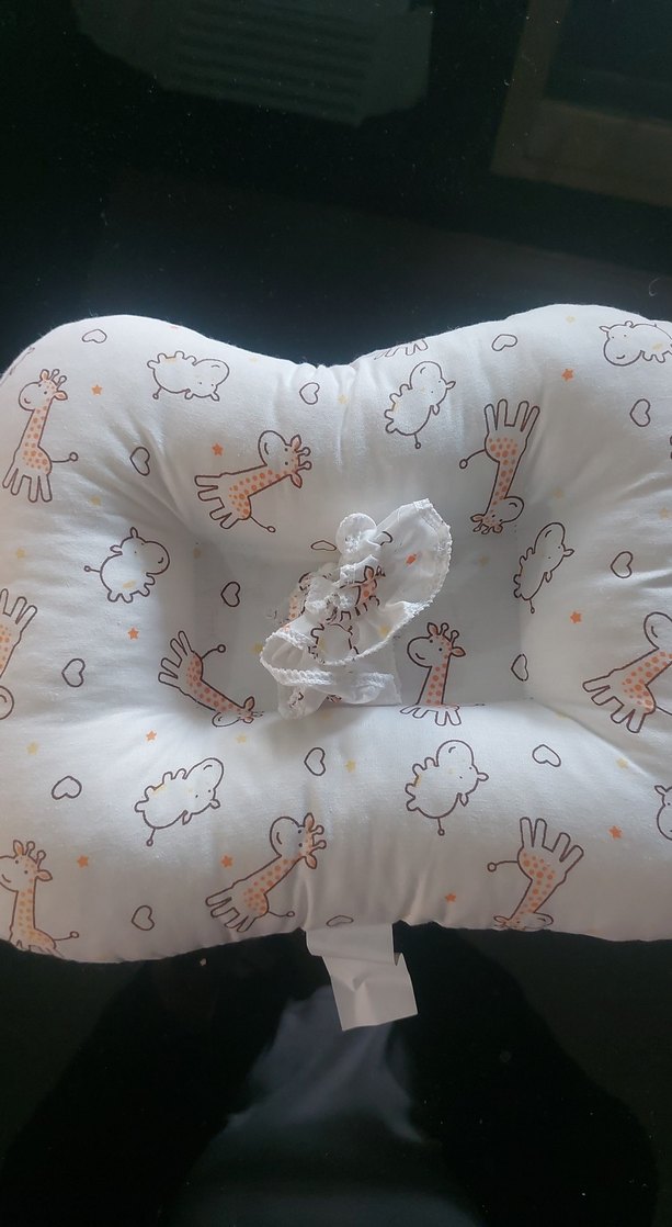 Yumuşak sentetik kumaştan, renkli baskılı zürafa ve koyun desenli beyaz bebek destek yastığı. Ortasında sabitleme kayışı bulunur. emzirme yastığı hediye geldi kutusu yok ama kullanılmadı ürün etiketinden anlayabilirsiniz yikanmadi kullanılmadığını